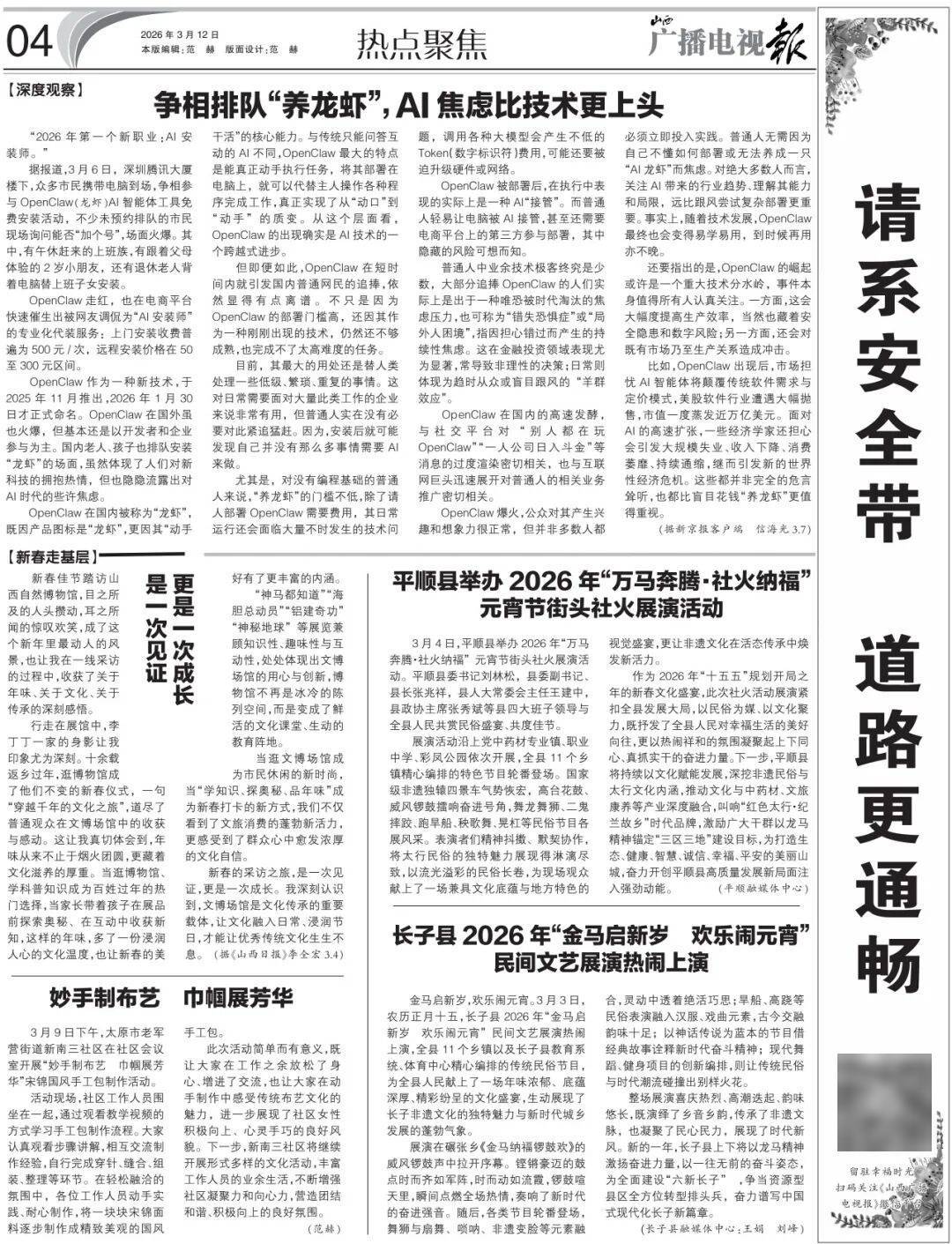 作为2026年“十五五”规划开局之年的新春文化盛宴,此次社火活动展演紧扣全县发展大局,以民俗为媒、以文化聚力,既抒发了全县人民对幸福生活的美好向往,更以热闹祥和的氛围凝聚起上下同心、真抓实干的奋进力量。下一步,平顺县将持续以文化赋能发展,深挖非遗民俗与太行文化内涵,推动文化与中药材、文旅康养等产业深度融合,叫响“红色太行·纪兰故乡”时代品牌,激励广大干群以龙马精神锚定“三区三地”建设目标,为打造生态、健康、智慧、诚信、幸福、平安的美丽山城,奋力开创平顺县高质量发展新局面注入强劲动能。(平顺融媒体中心)